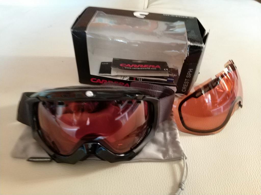 3. Naocare za skijanje Carrera Crest SPH, boja shiny black, staklo Super Rosa Photo C. One su vec bile ovde u oglasu pa ako taj oglas i dalje stoji zamolio bih moderatore da ga obrisu i da bude sve u ovom oglasu. Koriscene su 5 dana i kao nove su. Staklo bi trebalo da je fotohromatsko ali ja to nisam primetio zbog cega sam u medjuvremenu dobio drugo isto staklo od proizvodjaca koje nisam probao i na njemu jos uvek stoji fabricka folija. Idu u kutiji sa oba stakla. Mogu se podesavati prema sirini nosa. LINK ka sajtu proizvodjaca. S obzirom da su koriscene cena je 40e.