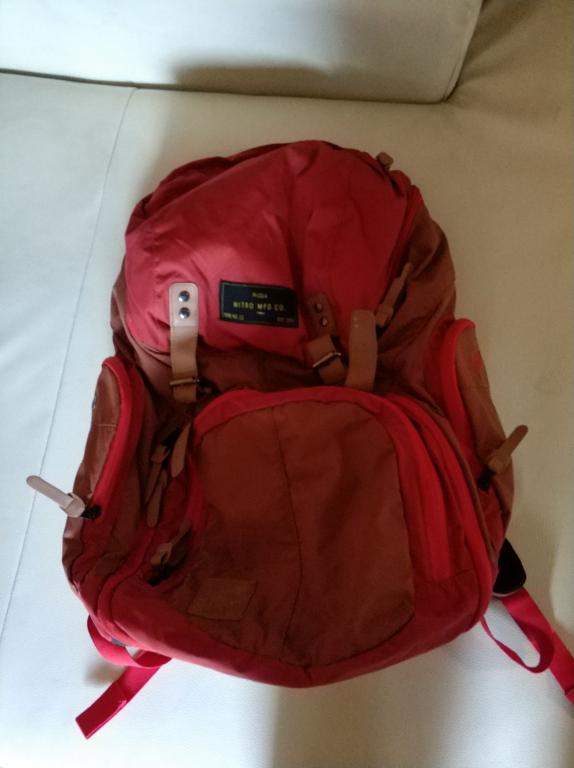 6. Ranac Nitro Weekender, boja Camel/Red. Koriscen za 2 vikend putovanja. U odlicnom stanju. LINK ka sajtu proizvodjaca, posto je boja proslosezonska mozete videti OVDE kako izgleda. Cena: 50e.