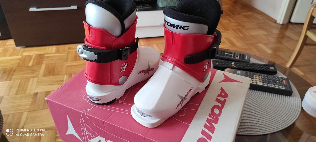Evo za nekog novog malog skijaša, potpuno nove junior Atomic pancerice, 25 1/2, US 7.5, UK 8, 160mm, made in Slovenia.