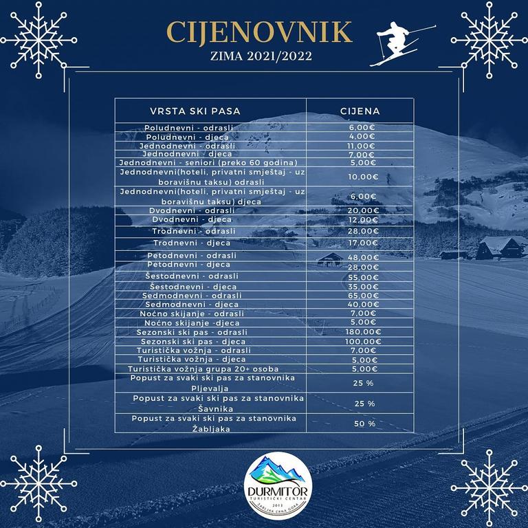 Ukoliko nekoga ove sezone put nanese do Durmitora, evo aktuelnog cenovnika: