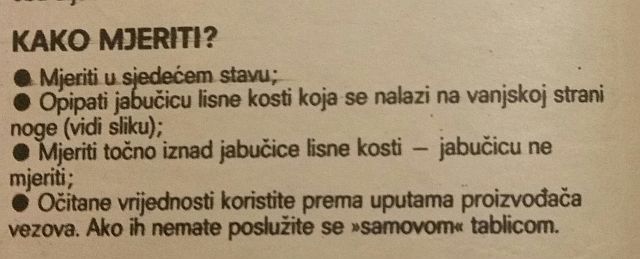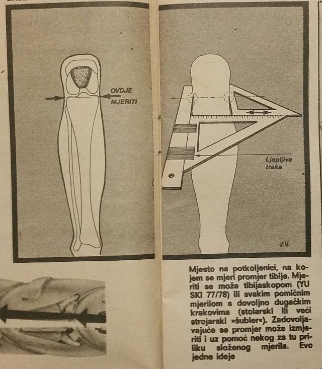 Za one koji slučajno ne znaju, lisna kost se u narodu naziva fibula. Spomenutom "samovom" (od Sam Svoj Majstor) tablicom iscrtanom na tibiaskopu se nemoje služiti, jer je pravljena prije DIN standarda za vezove, već može poslužiti ova tebela.