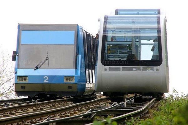 Novi vagon mimoišao se sa starim vagonom koji je na taj način spušten u donju stanicu gde će biti zamenjen novim.