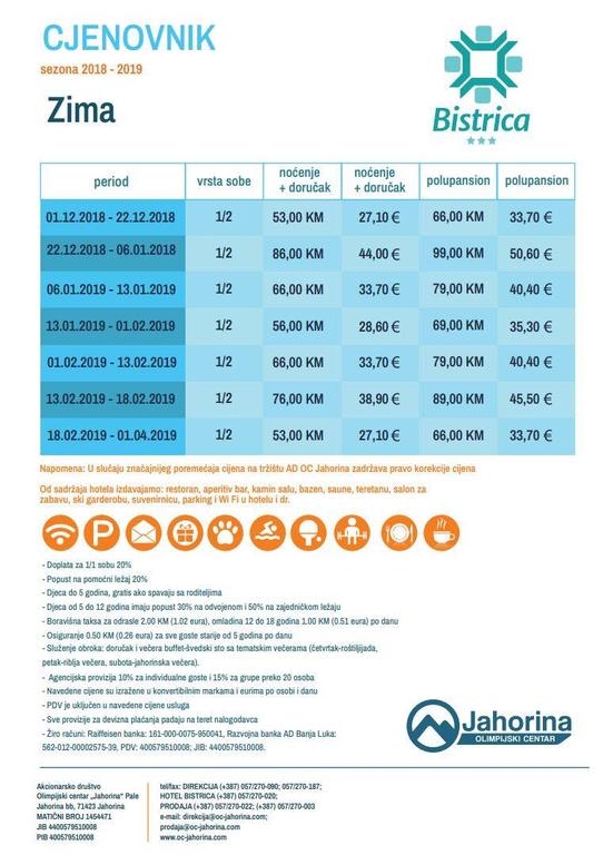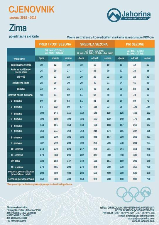 Jahorina - Objavljene cene skipasa za ski sezonu 2018/2019 kao i cene za boravak u hotelu Bistrica tokom naredne zime...
