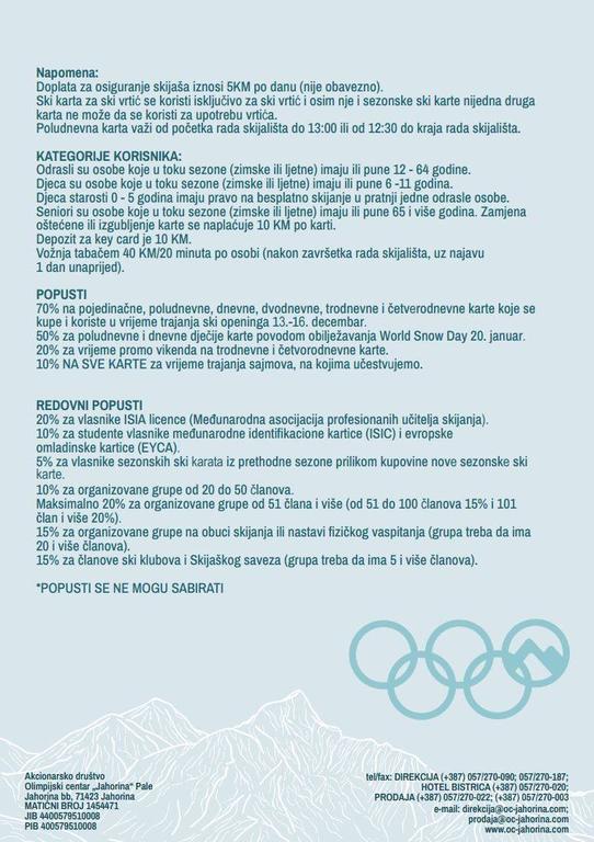 Osim nenormalne cijene sezonskog pass-a (900 KM !!!) i cijena za odrasle koje se primjenjuju za djecu, nemam drugih primjedbi.