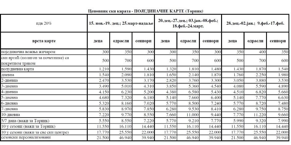 Evo screen cenovnika, za sve zainteresovane :sm021: @niipheus ima dobro pamćenje, traka jeste 500 dinara za decu i 700 za odrasle, naravno, ukoliko odrasli nema standardni ski pass. Doduše, deca do 5 godina ne plaćaju ništa, ali ako ih roditelj uči on naravno mora imati validan ski pass.