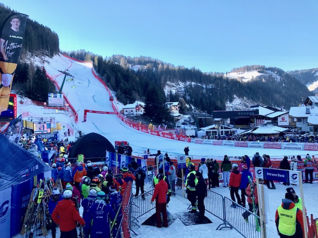 U sklopu posjete dolomitima i skijanja, bilo smo u prilici skijati val gardenu i gledati trku svetskog kupa. Trka je vozena na saslong stazi, gledali smo SG i downhill. Iznenadjujuce malen broj posjetitelja. dnevna karta 15eur. Mozete gde je to moguce biti uz stazu ili u cilju. Pristup trci nije moguc iz naranđastog smjera sellaronda vec samo iz zelenog pa kad se spustite u val gardenu, idete gondolom Ciampinoi na vrh Ciampinoi. Tu je start i tu ulazite na stazu. Trka se vozi niz saslong koji inace zavrsava u St. Christina. Crna saslong je zatvorena za trku a vi se spustate crvenom do gondole saslong i tu je cilj. Tom istom gondolom se vracate na vrh.