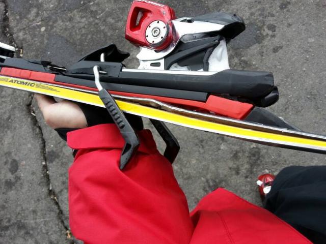Krenuo da pada,okrenuo se ledjima naopacke prema nagibu i zabio skiju pod 60 stepeni u odnosu na stazu jedno 30cm duboko u sneg i povukao svom tezinom (95kg) skiju. Vez otvorio,ali skija se izgleda toliko savila da je pukla