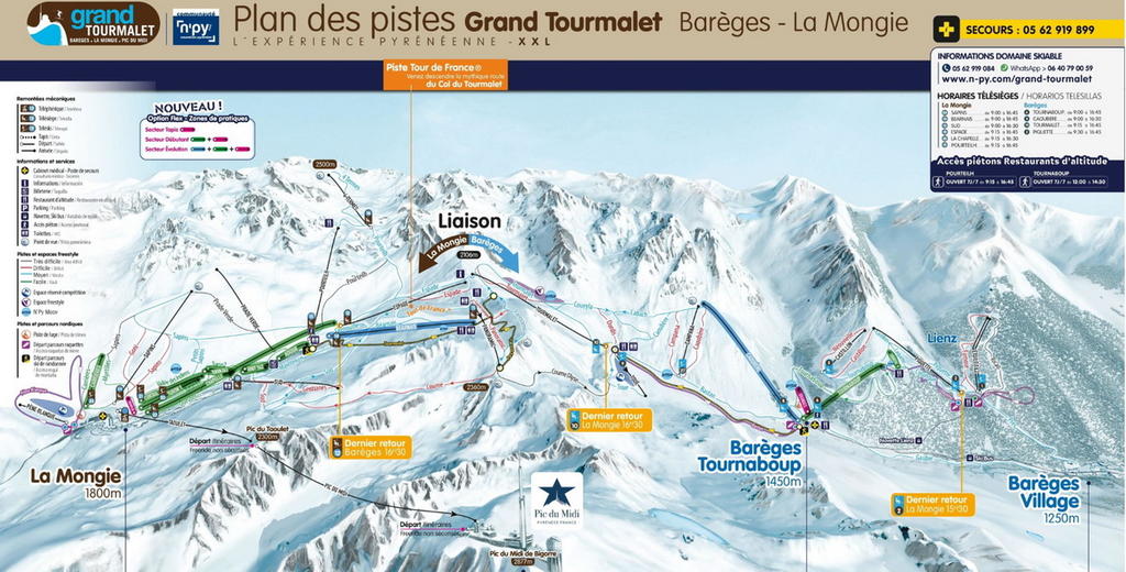 Ski centar Grand Tourmalet povezuje mesta La Mongie sa istočne i Bareges sa zapadne strane prevoja. Ski centar ima 100km ski staza sa 29 ski liftova, a prostire se od 1-250 do 2.500 mn/nv.