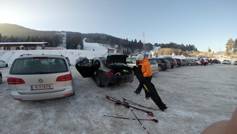 Elem, dosta o navigaciji (svojsvena je jednom drugom hobiju :D), da pređem na stvar: skijalište ima dve polazne pozicije: parking na četvorosedu (N46.50473° E13.56162°) i parking na gondoli iznad FIS staze 1 i ujedno najveće atrakcije skijališta (N46.50734° E13.53452°).