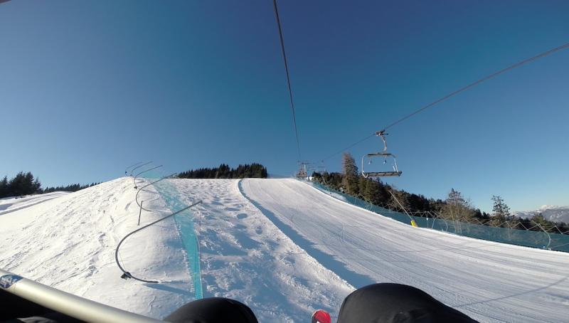 Tarvisio prosto nema pravih staza za početnike, toliko mu fale da skoro lažira markaciju na dole :) (pomenuta staza br.3 u mnogim centrima bez blama bi bila obeležena kao crvena). Jedina dovoljno dugačka plava staza nalazi se na grebenu, staza broj 12. Do nje se stiže sa vrha staze 11, trakom za izvlačenje: