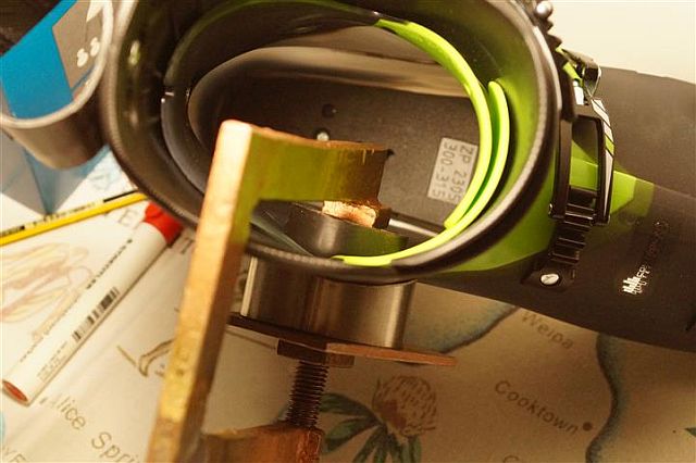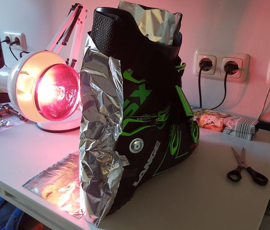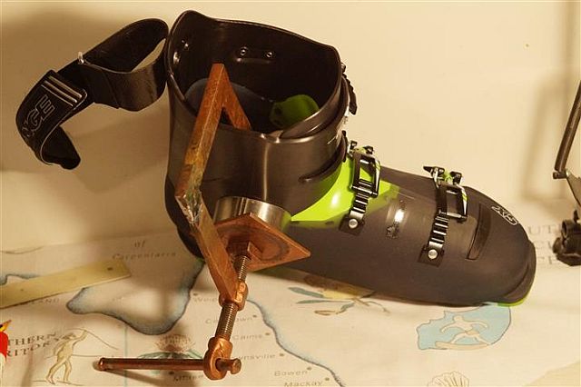 Sledeći svetao primer kolege Stekana uradio sam korekciju na ski cipelama. Prvobitno sam hteo da uradim na isti način ali posle neuspele pretrage po garaži usledila je promena načina izrade. Moj problem sa stopalom je ispod skočnog zgloba tako da je stega trebala da bude dužih krakova od uobičajenih pa sam to rešio izradom alata za razvlačenje iznutra. Videćete na slikama, za parče cevi sam zavario maticu i umetnuo šraf koji okretanjem reguliše pritisak na cipelu preko metalnog poklopca sa osovine točka ( ono što sam našao u garaži ). Imam i heat gun ali sam se plašio da ne istopim plastiku pa sam koristio običnu spot lampu koja posle 30 min lepo i bezbedno omekša plastiku. Ostalo sam prepisao alu folija, stega spolja i negativ od poklopca rezervoara i profilisane plastične cevi oblikovane prema cipeli. Ja sam zadovoljan uradjenim a to je jedino bitno. Da li ima efekta? To ću saznati nadam se uskoro na snegu. Pozdrav.:sm018: