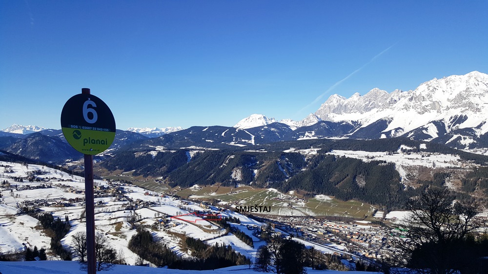 Bili smo smješteni u http://haus-ahorn.at/ koji se nalazi iznad Rohrmoos-a, praktično ski in/out uz malo gurkanja pri izlasku na stazu.Prilog 16401