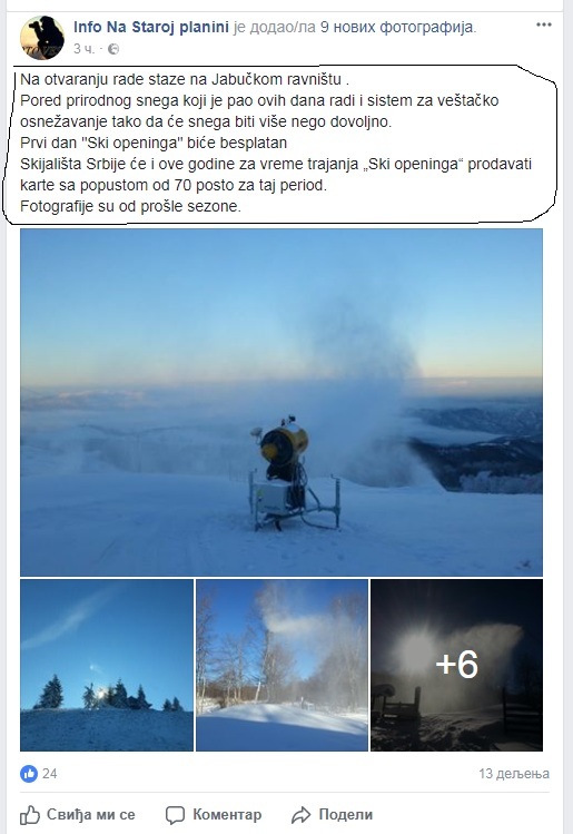 Evo i zvanične informacija sa FB strane Skijališta Srbije: