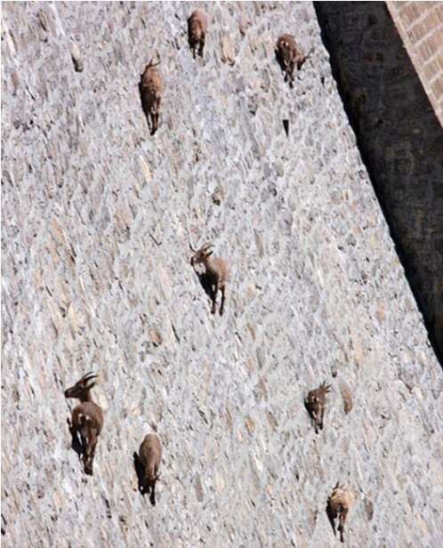 Iako se na prvi pogled ne primećuju, na strmom nasipu na severu Italije uslikane su alpske ibeks koze, koje su se bez imalo poteškoća pentrale po padini.
