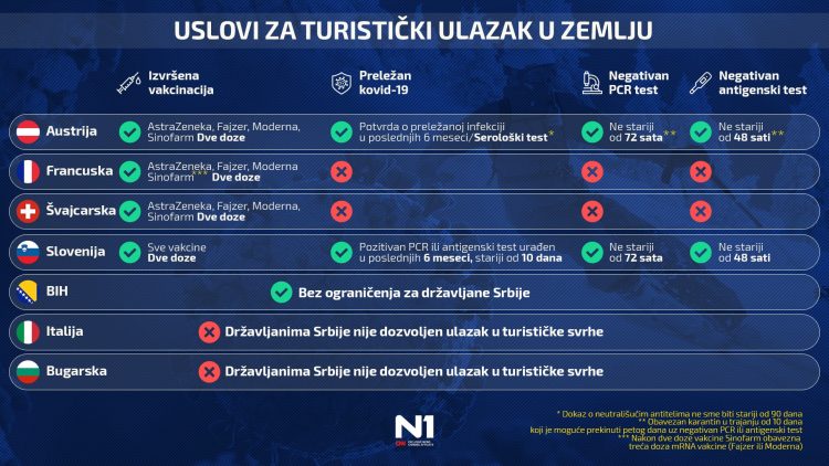 Takodje da se napomene, nije potrebno sve. Ili ili. Ako si vakcinisan, testovi ne trebaju. Tu pricam o Austriji i Sloveniji. Kao sto sam vec ranije rekao, ove god od Italije nista. Jedino inostranstvo je Austrija