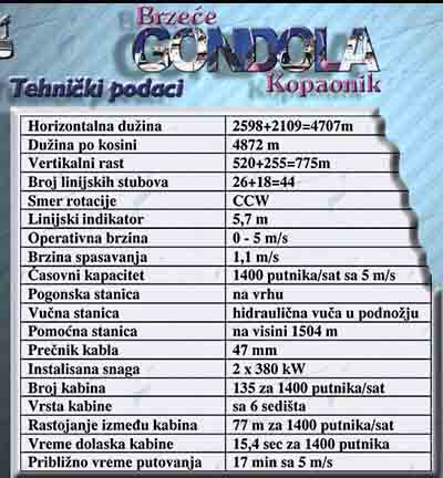 Što se tiče planova izgradnje gondole Imam MULTIMEDIJU sa slikama trasa tehničkim podatcima i planovima, ali to je trebalo da bude urađeno još 1999. Izvođač je trebalo da bude firma POMA. Ako nekog interesuje MULTIMEDIJA mogao bih da dostavim poštom nekom od članova foruma sa područja Beograda pa posle koprajte i rasturajte kako vam je volja.