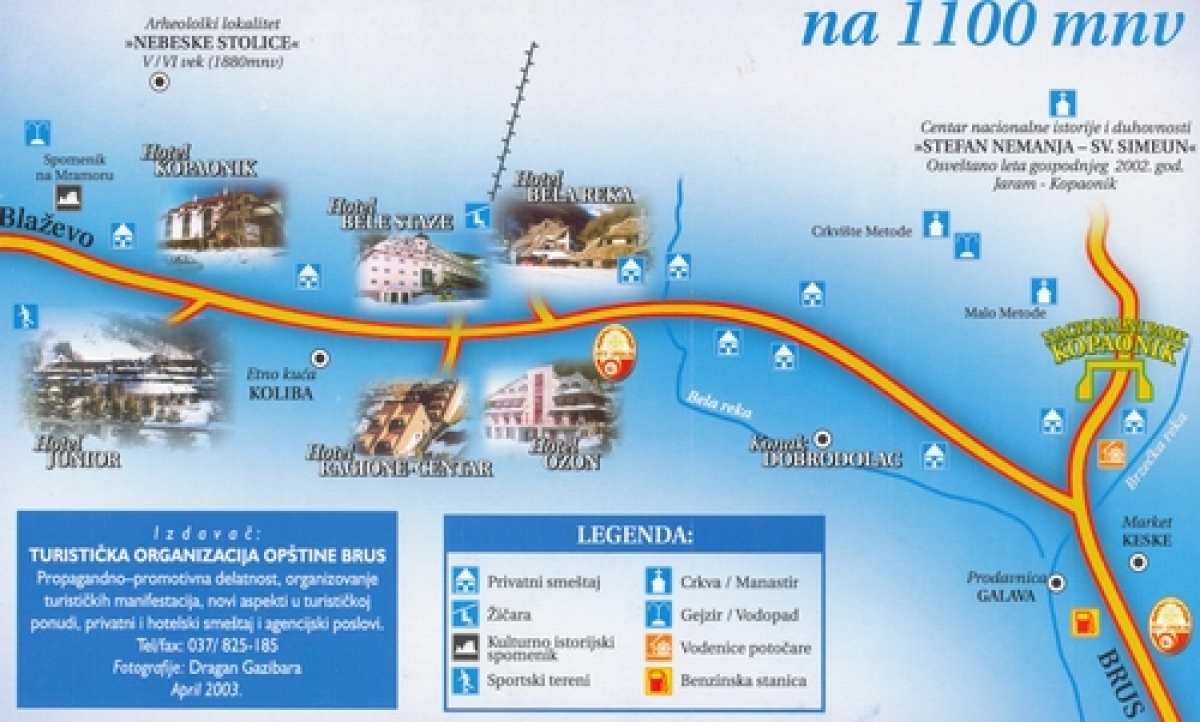 Mape naselja turističkog centra Kopaonik, od Brzeća, preko Turističkog centra Sunčani vrhovi do vikend naselja Treska.