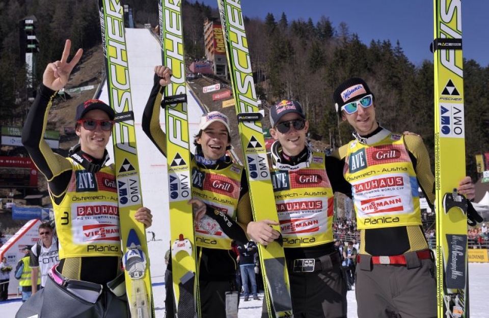 Reprezentacija Austrije trijumfovala je na poslednjem timskom takmičenju sezone, letovima na slovenačkoj Planici. Austrija je nastupila u sastavu Tomas Morgenštern, Andreas Kefler, Gregor Šlirencauer i Martin Koh, a oni su zajedno sakupili 1.619,3 bodova.