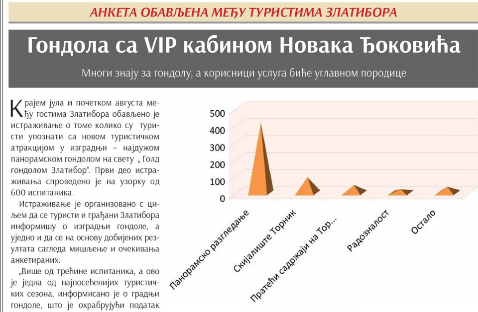 Idejni projekat za izgradnju gondole na Zlatiboru dobio saglasnost svih Älanova Revizione komisije Ministarstva graÄ‘evine. Ovo je bio pretposlednji i vrlo važan korak u Äitavoj proceduri dako da se uskoro oÄekuje konaÄno izdavanje graÄ‘evinske dozvole, Äime bi se strekli svi uslovi za poÄetak izgradnje.